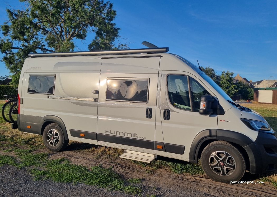 Op een gravel/gras parkeerplaats
