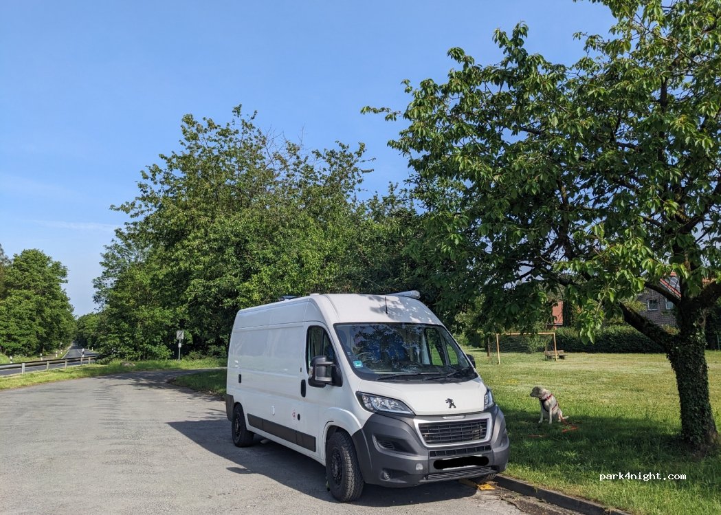 It's a large parking lot next to a local park. We enjoyed a lovely countryside/woodland loop walk from here and we weren't bothered by the road noise at all. Had a walk round the village too... it seemed like a nice place. We would stay here again.