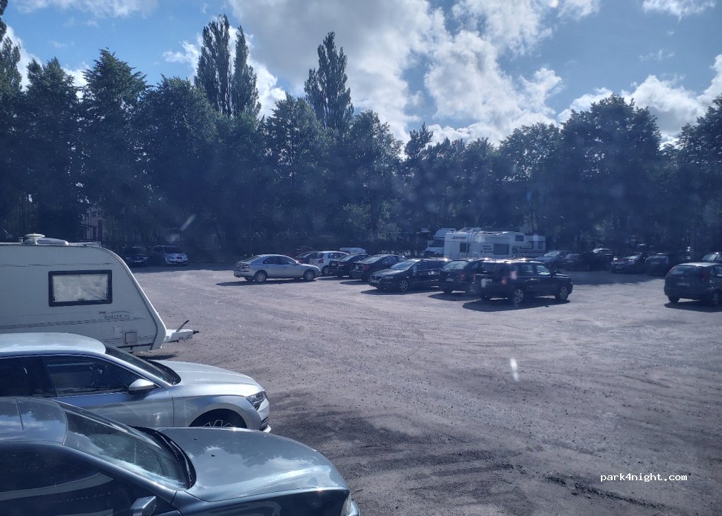 Geschotterter unbeleuchteter Parkplatz längs einer Straße. Im Rücken eine Polizeistation. Nachts einigermaßen Ruhe. Mehrere Flugzeuge im Anflug bis Mitternacht, gefühlt direkt über dem Parkplatz. Bis zur Seebrücke ca. 25 Minuten zu Fuß.