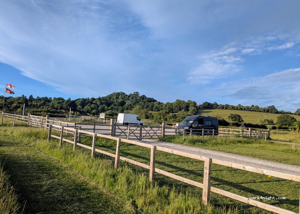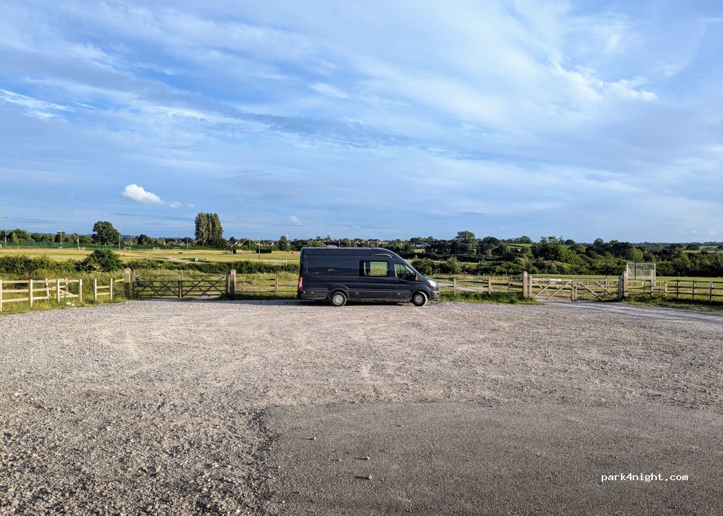 Carpark for Wotton Community Parc, adjacent to sports pitches and a skateboard/BMX track. We spent a few hours on a Saturday afternoon - lots of space for kids to run around and play. We were planning to stay overnight but several cars arrived about 10pm and we didn't feel comfortable so moved on.
