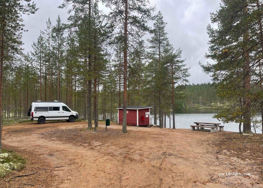 Quiet location near the lake, dry toilets, super clean and very pleasant. Small sandy road to the lake.