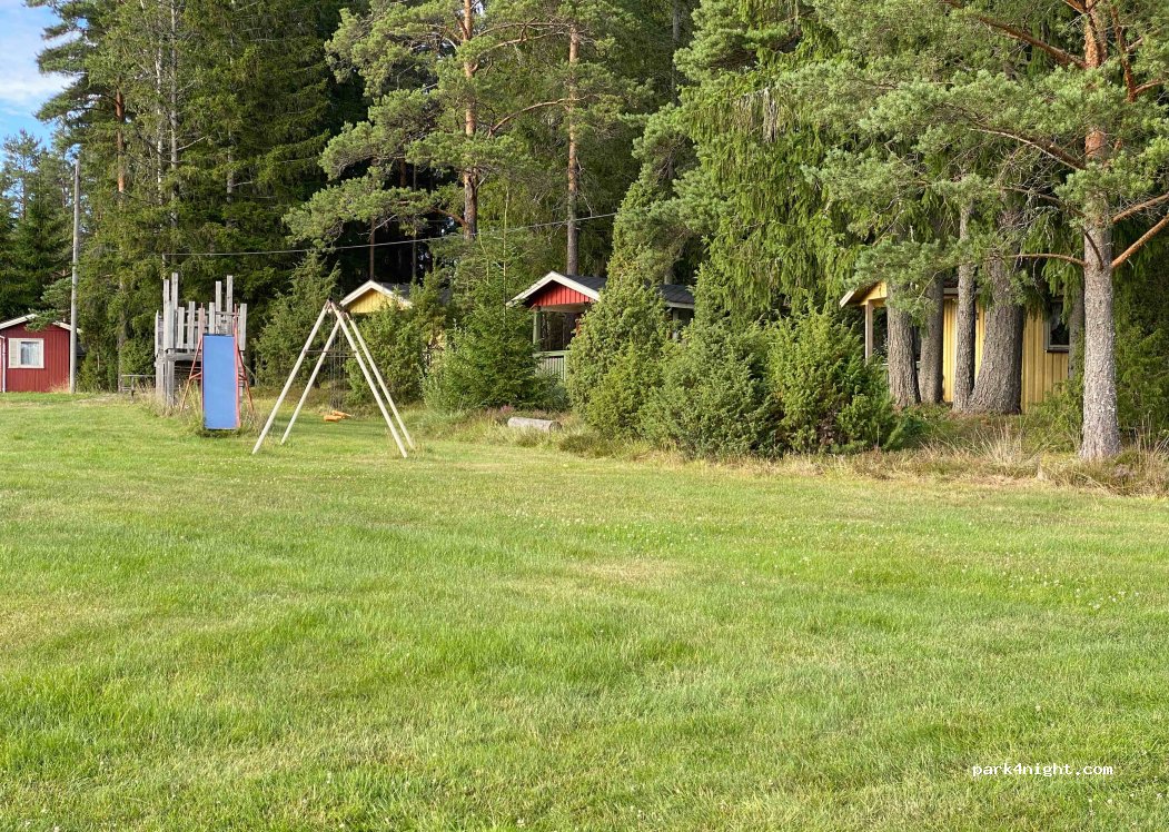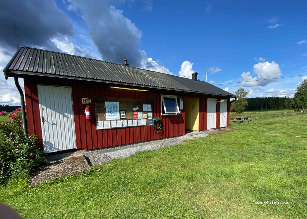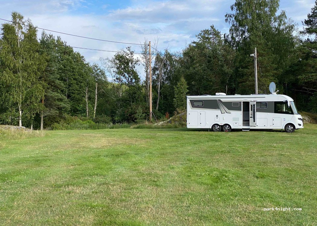 Nice small old campsite very cosy and no noise! Parking on grass. Old but very clean servicehouse with showers and toilets. Electrisity available, but smart to have extension cables. Cosy grillhouse and some seatings with table. Marked paths for walking or bicykle starts here. Check-in at owners house beside the main road. Cards accepted.