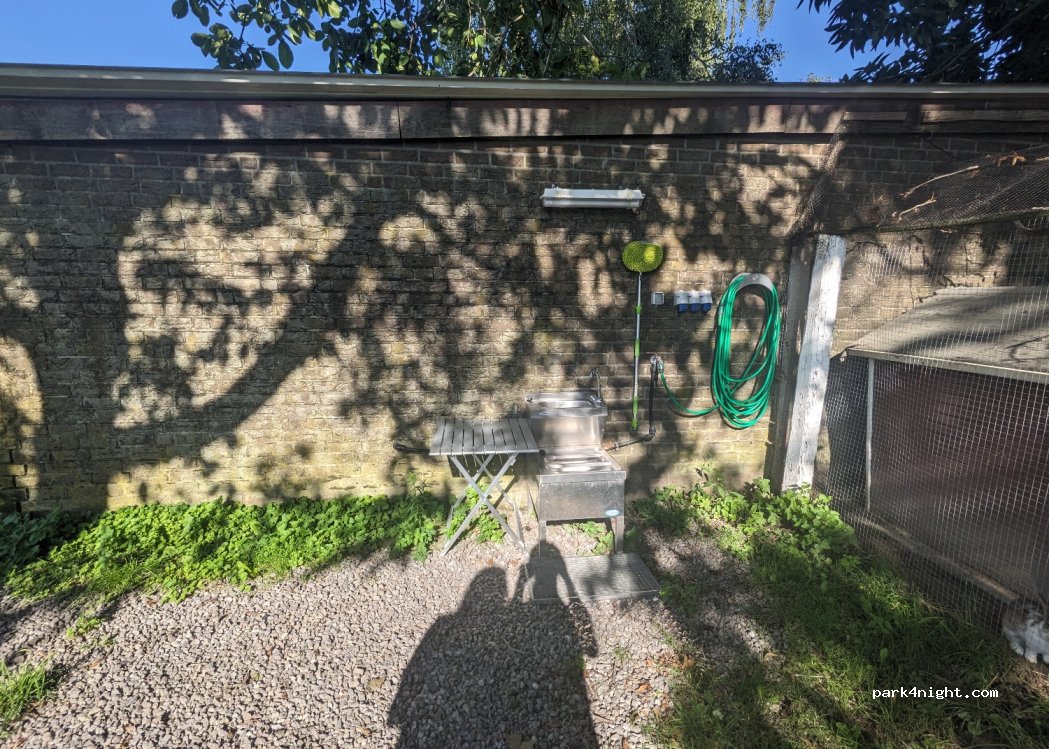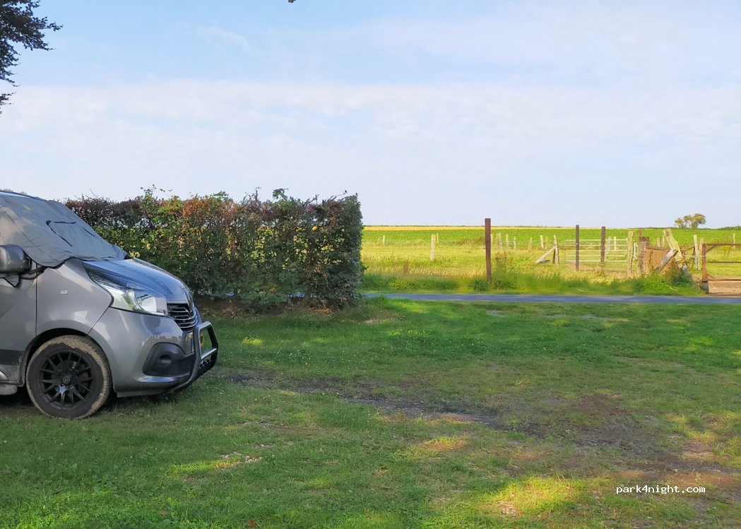 A small but nice site, which is easy to access. It belongs to a horse farm und is really close to the bunny hutch, which you can feed or pet after asking the owner. Toilet (and shower on request) are small but clean. Electricity, Water and a sink can be found directly on the site, the rest is in the farm. The owners are really kind and generous, but it's best to call them to let them know you're planing on coming.