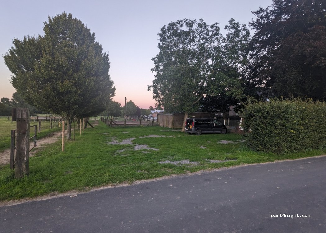 Une petite mais mignonne aire de service camping car, qui est facilement accessible. Elle fait partie d'un centre équestre et est très proche d’une cabane à lapins que vous pouvez nourrir et caresser après avoir demandé les propriétaires. Les toilettes (et la douche sur demande) sont petites mais propres. Électricité, l’eau et un lavabo se trouvent directement sur l'aire, le reste se situe dans l'étable. Les propriétaires sont très gentils et généreux ,mais c'est mieux de les appeler avant d’arriver.