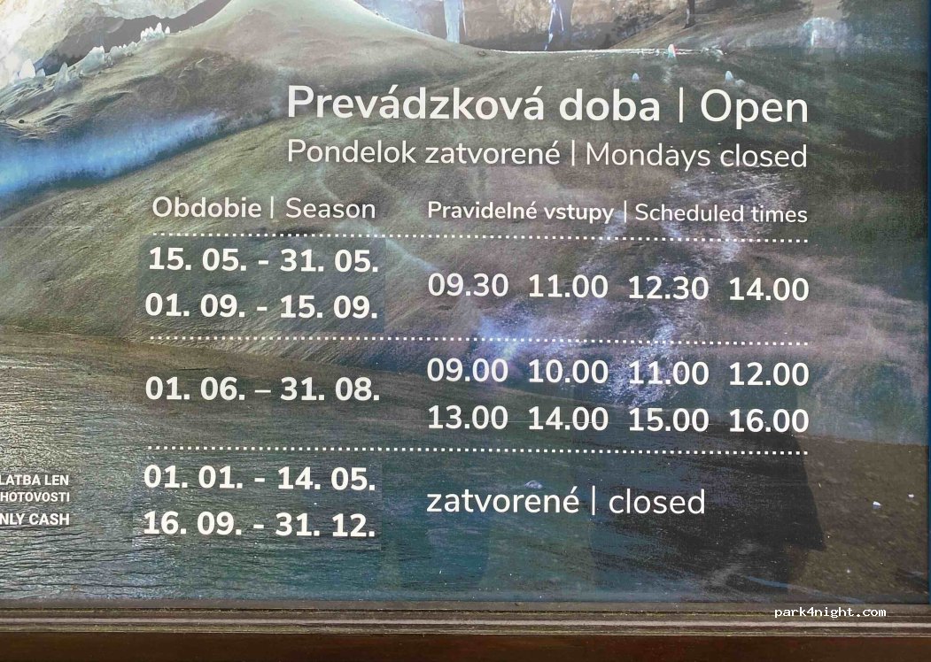 Parking to visit the Dobšinská L’adová Jaskyña glacier caves. And start of hikes in the Slovak Paradise National Park. Paying toilets next to the info point.