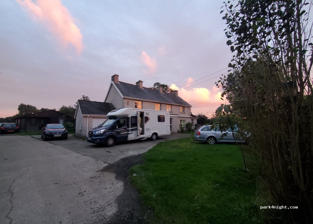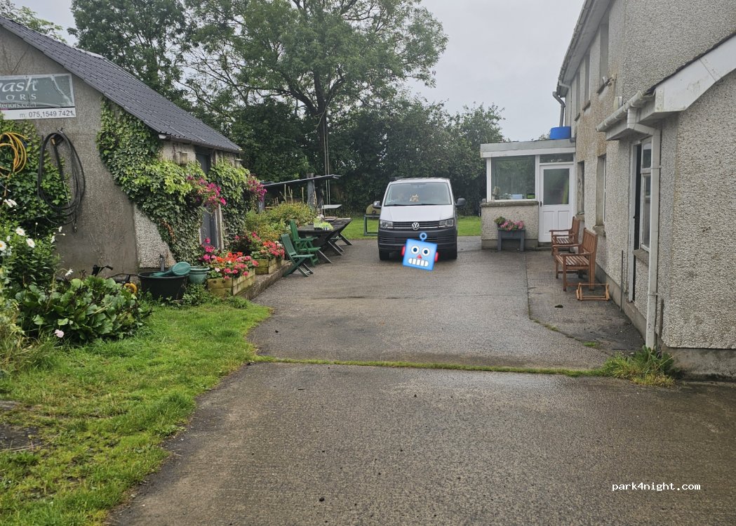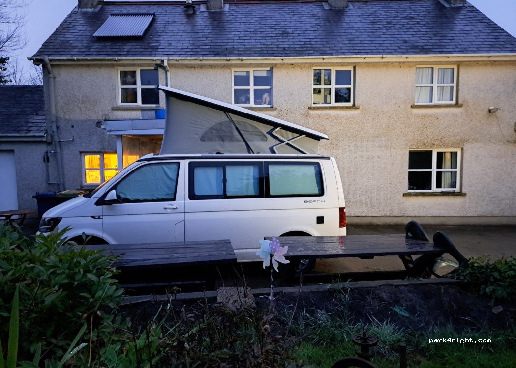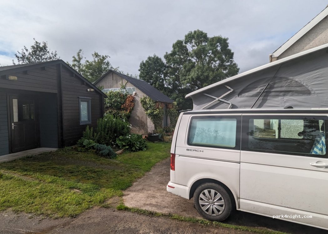 Very friendly owner! Basic shower and toilet (only 1 of each in the same room), but shared kitchen facilities, outdoor seating area, dustbins, chemical toilet waste point & very quiet! For the price you cannot complain. I was parked at the side of the house in a Ford Transit SWB.