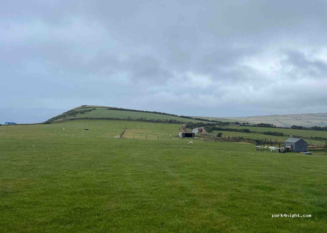 Unbestritten ein großartiger Ausblick! Sanitär/Service sauber, funktional, "Bretterbuden" mit Flair. Müllentsorgung, Frischwasser. Keine BordWC- und Grauwasserentsorgung. Naturcamping in toller Landschaft, für 35£/40€. Aktuelle Zufahrtsperrung Coulsworthy Ln ignorieren, da gesperrte Brücke erst hinter dem Platz liegt!