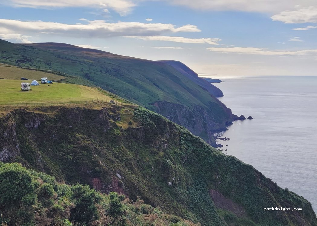 Ein wundervoller Platz - Blick auf das Meer von der Klippe hoch oben! Anfang Juli und es gab mehr als reichlich Platz. Sanitäranlagen (WC, Duschen mit heissem Wasser und Spülplätze) sehr sauber und mit viel Charme gebaut. Anfahrt aus Richtung Combe Martin mit langem Kastenwagen gut zu befahren.