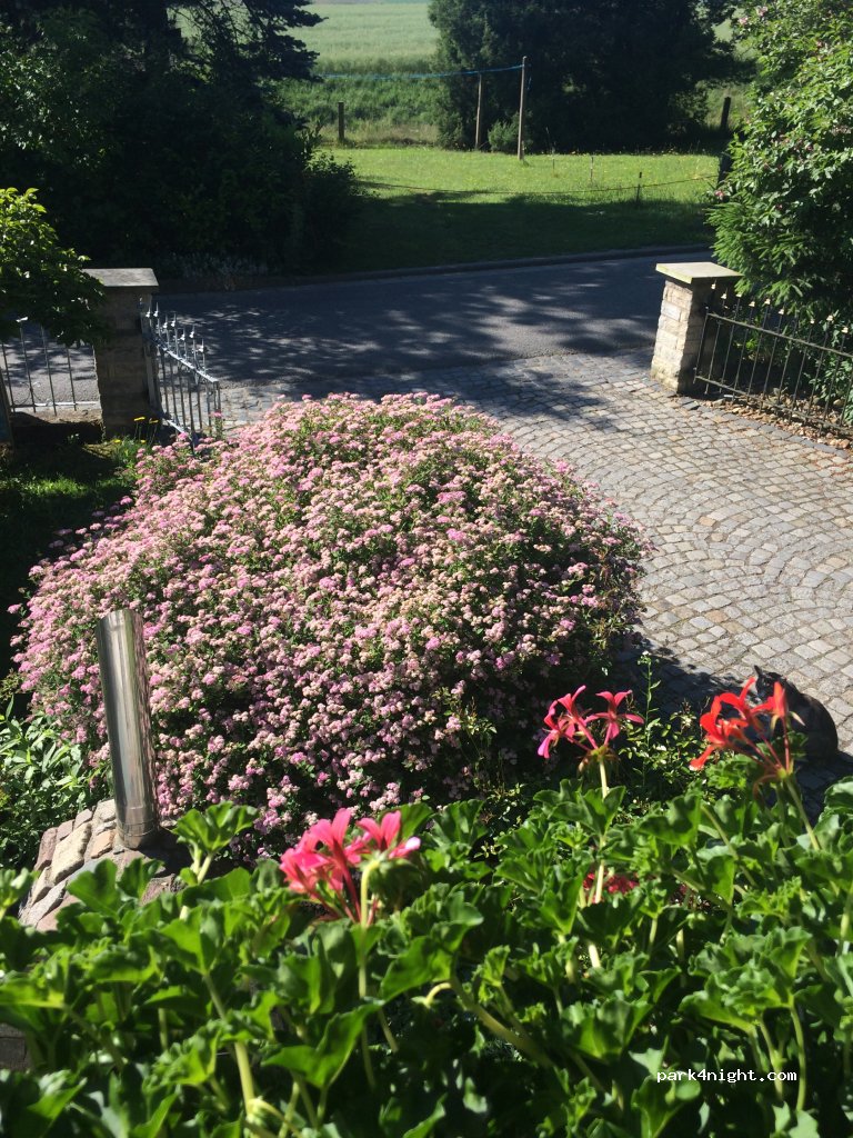 Es ist ein sehr ruhiger Stellplatz, allerdings in der hintersten Ecke des Hofes. Direkt neben dem Camper liegt Grünschnitt und anderer Unrat. Dafür ist man sozusagen direkt im Wald. Die Aussicht fehlt, das Bild ist auf jeden Fall nicht dort entstanden. Man ist von Hecken und Bäumen umgeben. Dafür freundliche Gastgeber und viele nette Leute im Ferienhaus, wo sich auch das Bad befindet.