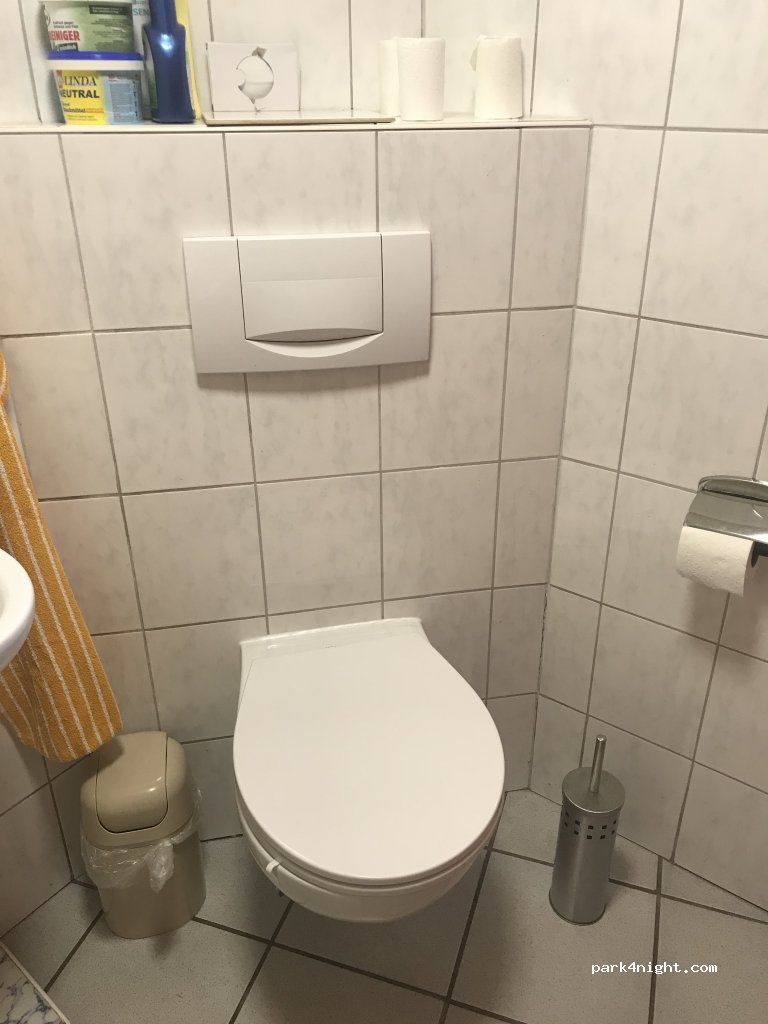 Nach telefonischer Anfrage wurde uns ein Stellplatz zugesichert, dieser befand sich in einer kleinen Hofeinfahrt. Einsicht von Wohnungen von allen Seiten und sehr eng. Dusche und WC befinden sich in einem chaotischen vollgestellten Kellerraum. Zugang über eine steile Treppe. Draußen hat alles einen sehr unaufgeräumten, eher schmuddeligen Eindruck gemacht. Wir sind direkt weitergefahren.