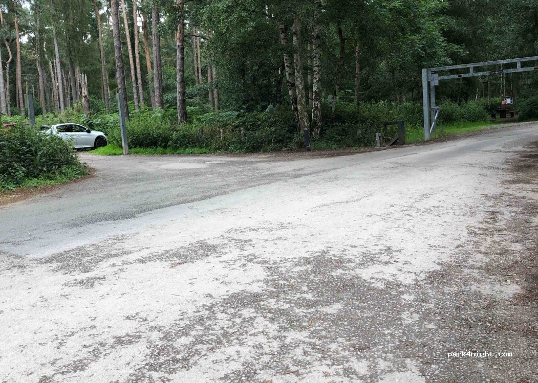 Woodland car park, next to road. No height redtriction but width restricted at 3.5 metres. 4G at reasonable signal strength. Next to much larger carpark that is height restricted at 1.9 metres. Picnic area at the top end of the larger carpark.