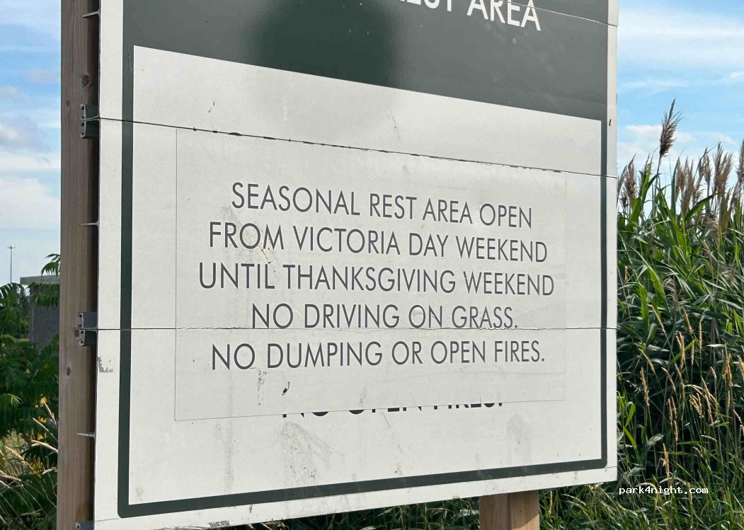 Aire de repos super agréable et tranquille. Toutefois, elle ferme à 19: 00 et il nous a été impossible d’y dormir. Nous avons dû transférer dans le stationnement du Service center.