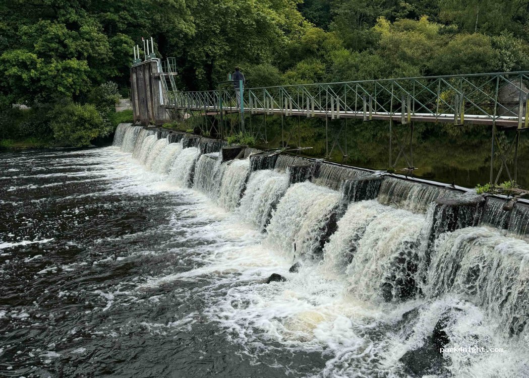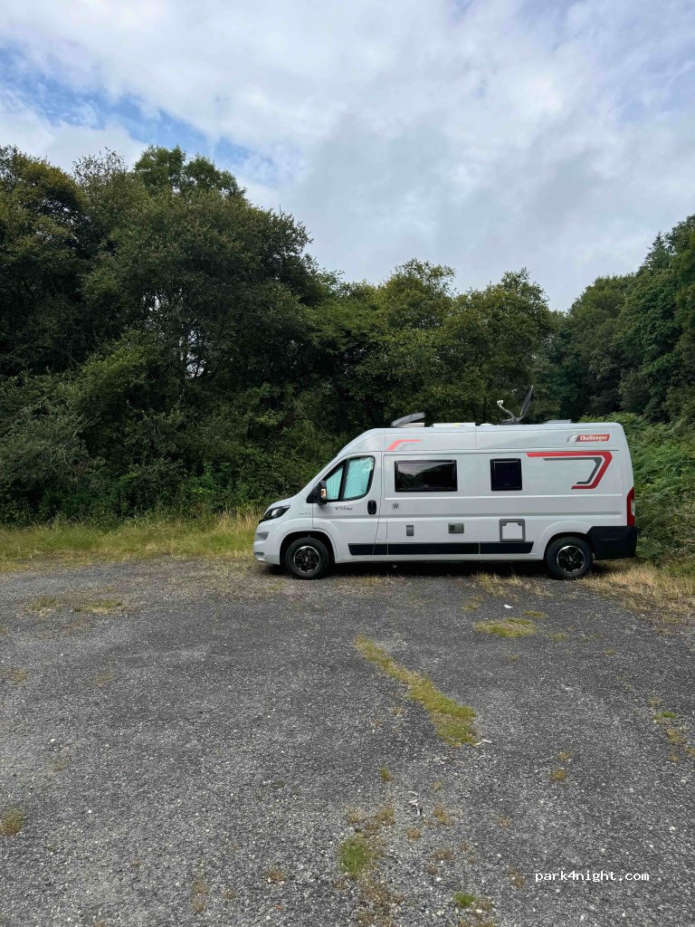 Parkplatz Brioldy Schloss. Picknicktisch. Spazieren Sie im Wald und am Blavet entlang. Da kann man schlafen.