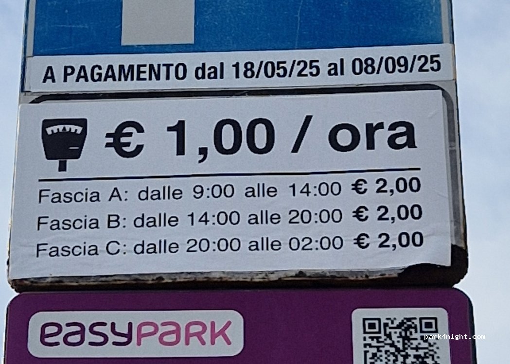 Paid parking (payable from 9.00 to 2.00) rather large and well located behind the small port of Bisceglie. I asked a local police officer if we could stay the night with our camper and he said yes.