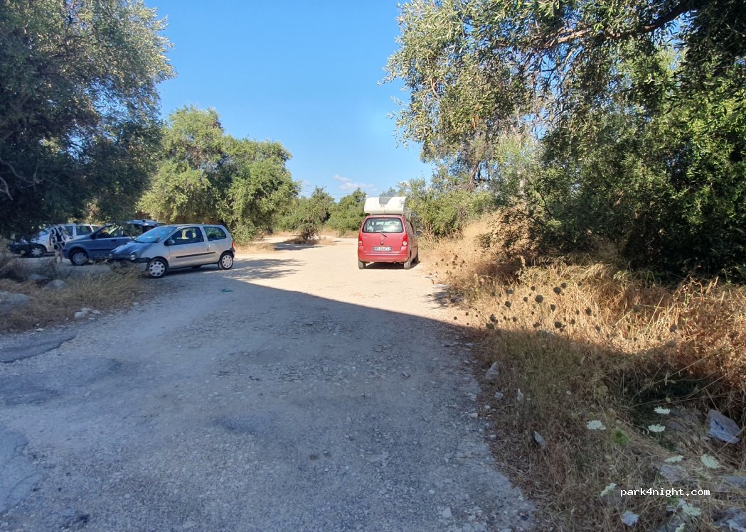 Parking just behind the cemetery, it's a small street so not too much traffic. A railway line not far but does not interfere. Bell rings at 8am, cars from that time on, put yourself further back because the first places are in the shade. Don't take this place for a trash can. No service or trash