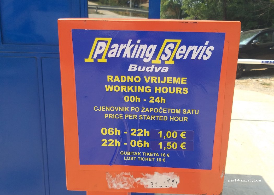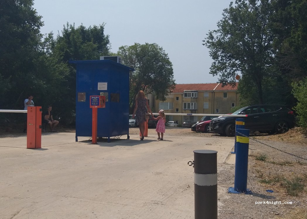 Parking at the entrance to Petrovac, 10' walk from the seafront. The parking below does not accept motorhomes. Nothing special but roomy, and very easy to get to.