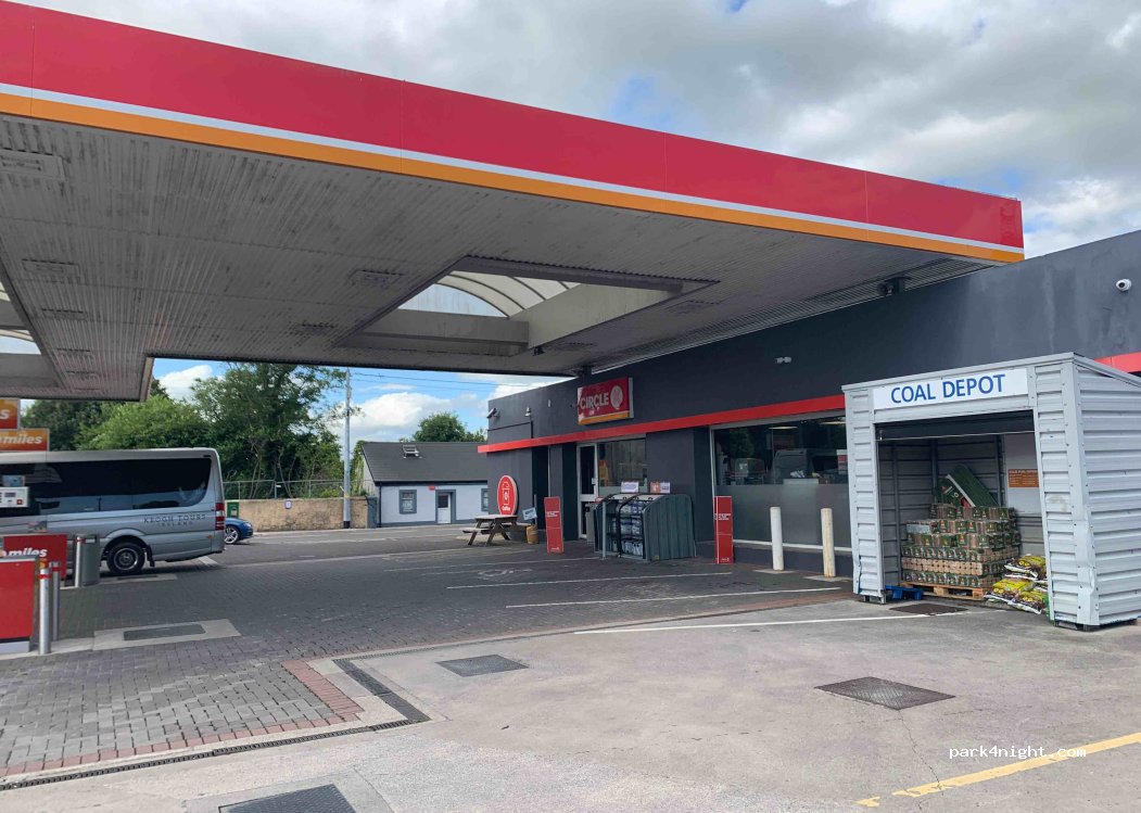 Eau gratuite au niveau de l’air. Toilettes dans la station service.