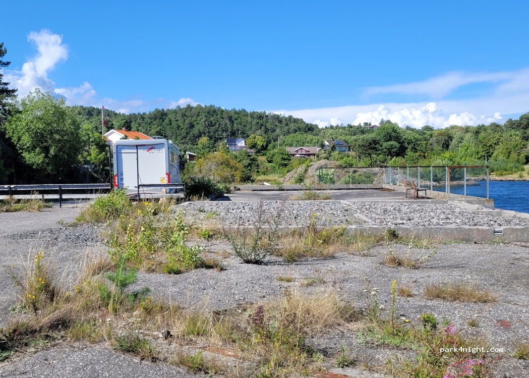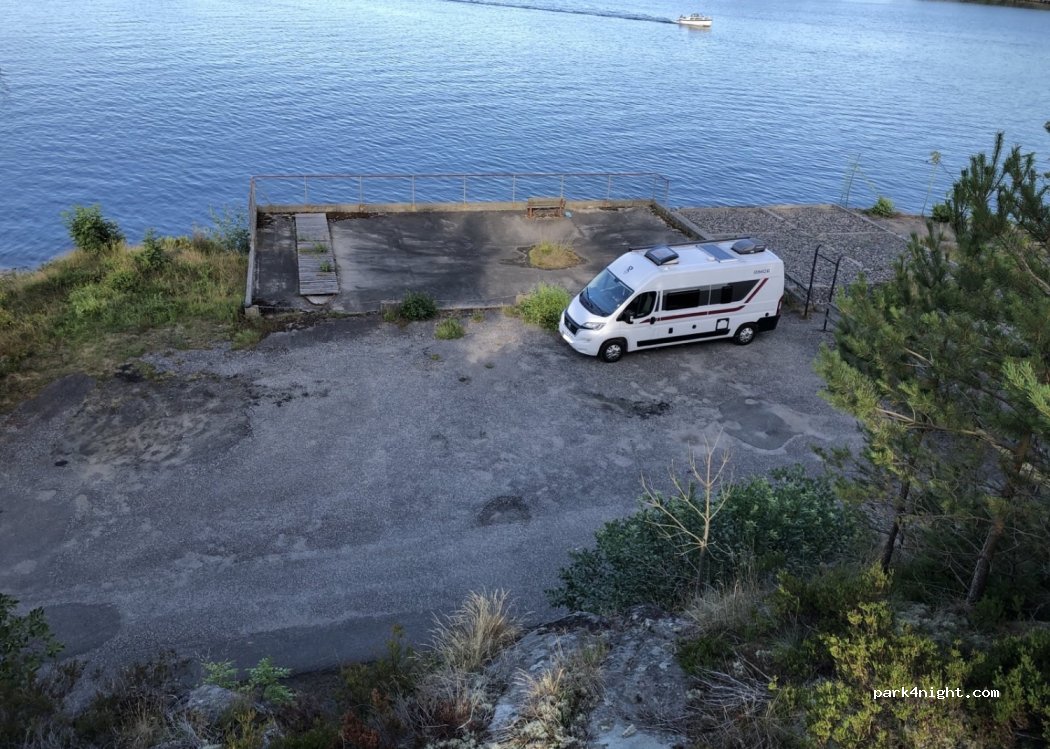 Place de parking très calme au bord de l'eau. Il y a une jetée où certaines personnes pêchent. Il y a de la place pour environ 4 à 5 campeurs. La route d'accès est plutôt étroite, mais asphaltée. Il y a un banc avec vue sur l'eau. Il y a un panneau interdisant de passer la nuit (20h - 6h)