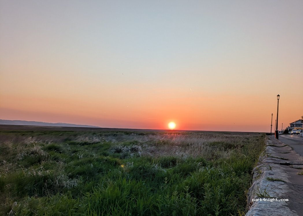 it's a road along the promenade to the marsh - no parking restrictions but on a nice evening its gets busy (seemed to empty around 8/9pm so either arrive early or after that time) very quiet overnight with no issues, felt very safe. public toilets 5 mins walk away (closed overnight). chip shop and pub very close by.