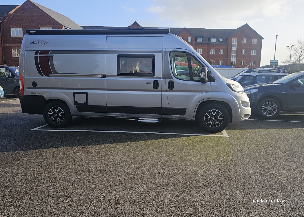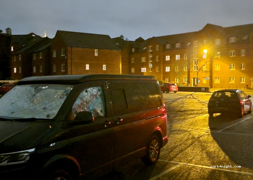 Free overnight parking. A quiet spot and we were not bothered. No facilities and very much an urban setting, the car park is surrounded by residential apartments and small houses. No other campervans there.