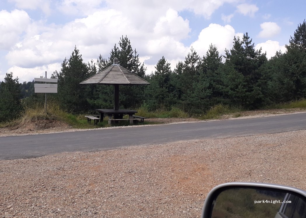 Fint sted. Dejligt med en ny anlagt vej for at komme hertil. Der er en lille bænk lige hvor man parkerer og et stort borde bænke sæt lige ude ved vejen. Meget tåget da vi besøgte stedet, så ingen udsigt. Relativt fladt underlag. Pas på de brune bjørne, og gå ikke ud når det er mørkt