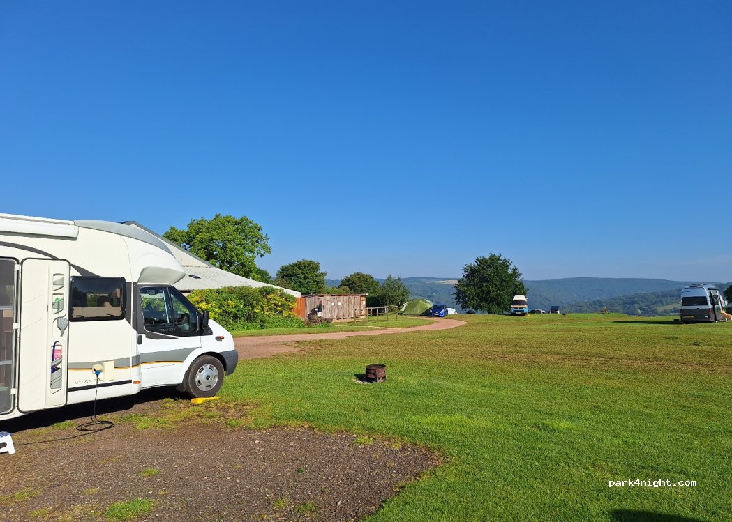 Nice farm campsite. Spacious sites and you can buy wood for campfire (£7). Lots of loud kids when we were there, but quiet after 23.00. Very nice view to the valley and clean toilets and showers (£1 p 4 minutes). Beautiful walks to Devils Pulpit and Tintern Abby. Friendly staff too.