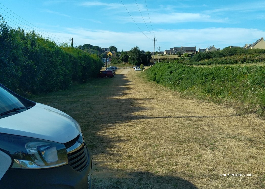 bon parking en herbe, un peu en pente sur le haut. nous y sommes allés au weekend du 15 août, vide le soir, beaucoup de place, à 5 min de la plage a pied . limité à 2m.