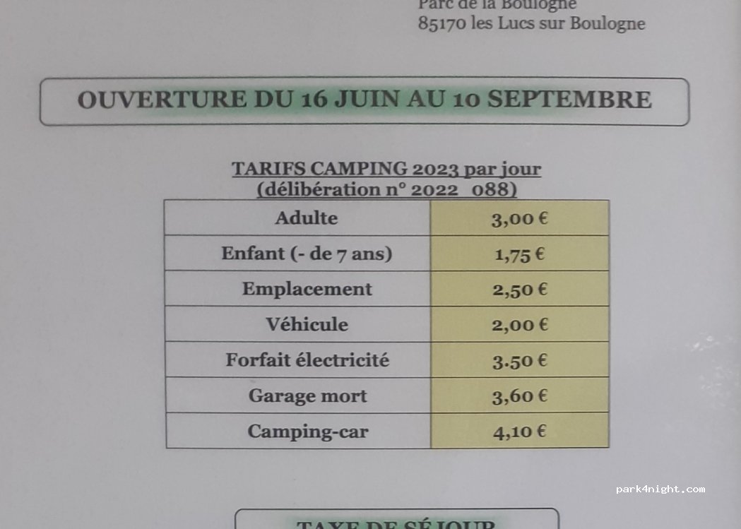 Municipal campsite 17 pitches some are not very flat. open from June 16 to September 10. ideal for visiting the Vendée memorial, you can stay until 6 p.m. without repaying one night. road overlooking the campsite a bit busy during the day. good alternative when you arrive after the memorial has closed and therefore impossible to park in the motorhome area. the toilets are clean