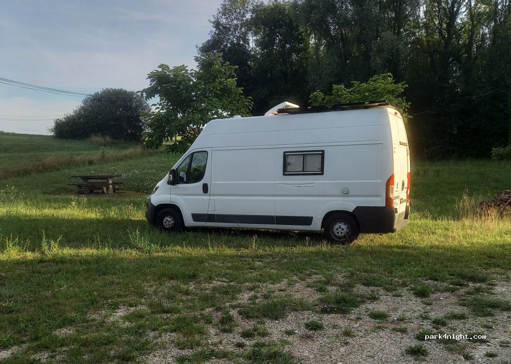 Aangename plek om te picknicken met bankje en vuilbak! Naast een vijver. Wij zijn hier niet blijven overnachten, maar het was er zeer rustig en dus waarschijnlijk ook geschikt voor een nachtje.