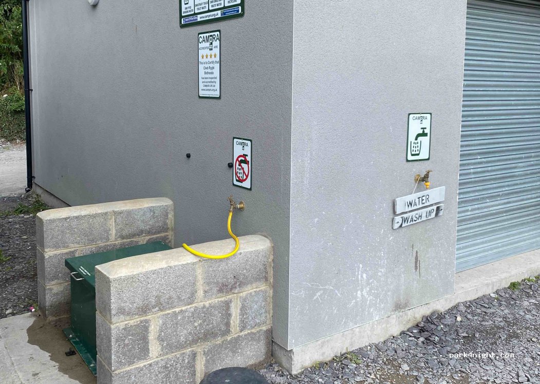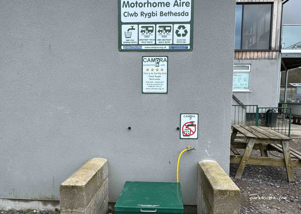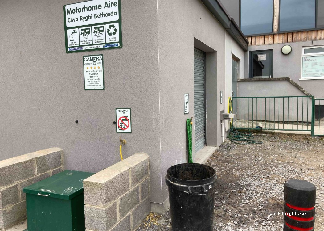 Emailed Wayne ahead and he replied really quickly, asked him the price for an overnight stop, which was £6, put the money in an envelope with the registration number and popped it in the letterbox on the main gate. Park around the back of the clubhouse, some potholes but loads of space, gets busy when there is evening training or if a match is on but no problems at all. Easy access to use the black waste emptying and fresh water refill, really quiet overnight and a brilliant value place to stay, thanks very much to Bethesda rugby club.