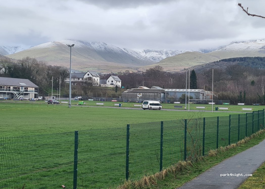 Perfecte plek voor een nachtje. Kinderen kunnen spelen op de (rugby)trainingsvelden en faciliteiten voor schoonmaken wc en bijvullen water. Laat je niet ontmoedigen door Bethesda, het oogt wat somber, maar binnen vijftien minuten wandel je in Snowdonia vanaf de rugbyclub. Bij ingang naar de rugbyclub leuke kleine supermarkt met lokale producten.