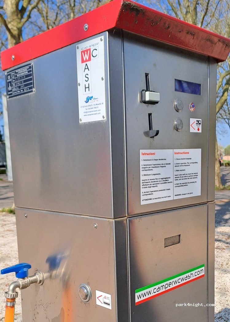 Comodissima sosta con scarico acque grigie e luce vanno benissimo,scarico acque nere non funzionanti(la macchinetta si è fregata 1 euro) e il carico acqua non so se funzionanti. Io ho usato questa sosta la sera prima di raggiungere il parco acquatico di Jesolo. Ottimo
