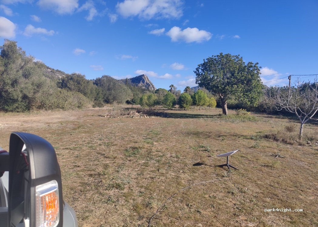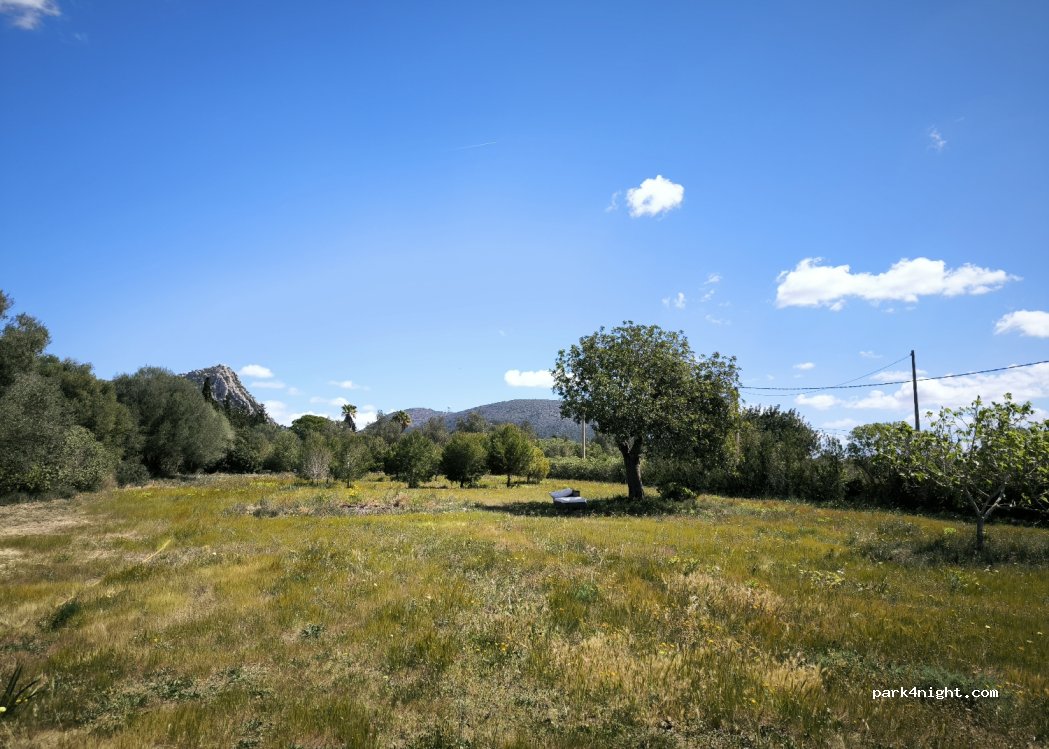 Es ist ein flaches und geräumiges Grundstück mit einigen Johannisbrotbäumen.