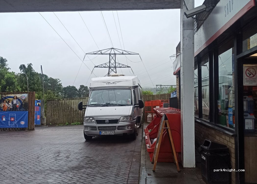 Personnel adorable et souriant, aucune pression mise pour se dépêcher. Nous avons pu recharger l'eau fraîche dans notre camping-car gratuitement. Avec notre tuyau et notre embout à nous. Et on a aussi pu acheter de délicieux Scott buns pour le petit dej, dans la boutique de la station.