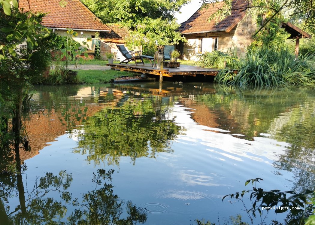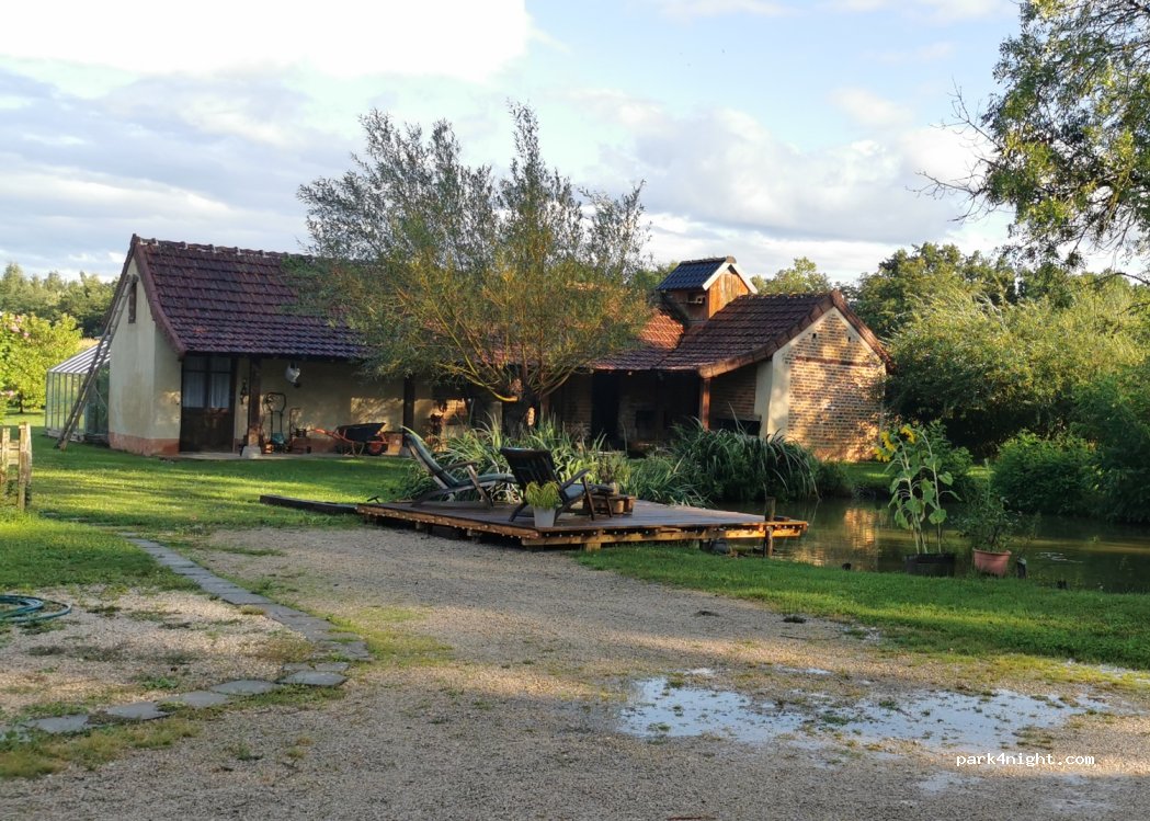plus qu'une pause chez Romain et Angie c'est u. Havre de paix oie, poules , chiens, chats et d'autres animaux s'y promènent en liberté donnant un aspect arche de noe à ce lieux su reposant la petite marre regorge de poissons nos hôtes son d'une douceur et d'une sympathie incroyable le prix est plus que correct pour la qualité du lieu une pause extordinaire dans la route vers les vacances