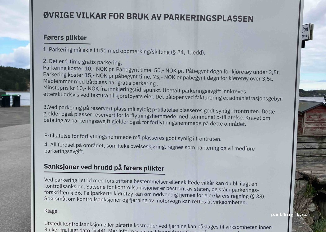 Direkt am Wasser, schöne Aussicht auf den Sound und die Schären. Nicht kostenlos, aber 50 Nok pro angefangem Tag ist ok. Videoerfassung, bezahlt wird per App oder Überweisung