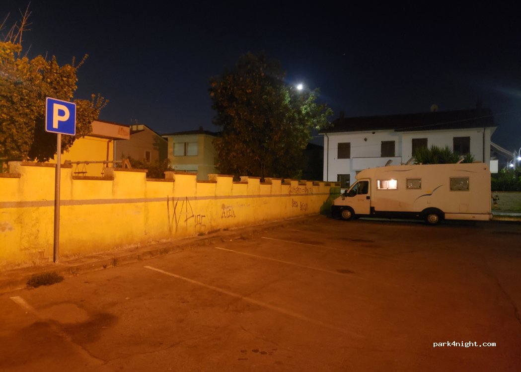 Piccolo parcheggio situato tra un supermercato Lidl e una zona residenziale, perfetto per passare la notte, illuminato, lontano dal traffico, in piano e senza altri mezzi parcheggiati (sembra di essere dietro una scuola)