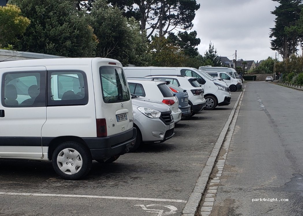 interdit d'y stationner la nuit a cause du camping. Parking avant la plage du Port Blanc. Juste avant le Camping. Les toilettes de la plage sont accessibles. Plage assez grande avec de grosses vagues. Il y a un bar au dessus, Le Dôme, sympa.