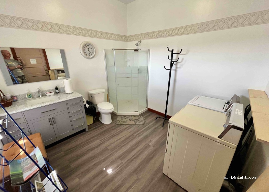 Kostengünstiger Parkplatz. An der Seite befindet sich ein Kästchen für die Zahlung, wenn das Center geschlossen ist. Die Kosten liegen zwischen 20 $ (20 Ampere) und 40 $ (50 Ampere). Es gibt Wasserversorgung, Dusche, Wäscherei, Picknicktisch, kleines Café und Toilette. Es gibt zwei Parks in der Nähe. Immer noch recht ruhig und in der Nähe des Lebensmittelgeschäfts, der Buchhandlung und der Tankstelle. Die Leute sind sehr nett und gastfreundlich.