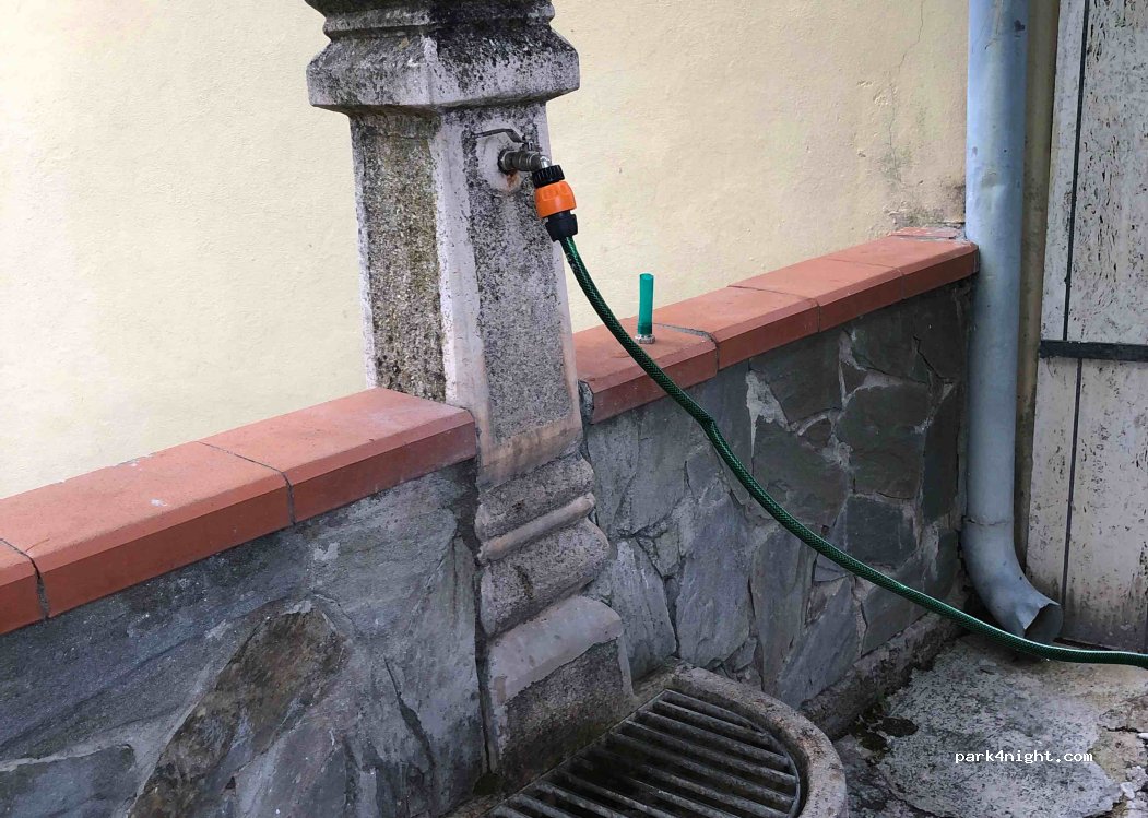 Drinking fountain on a road with little traffic. There are two fountains on the street, we used the one on the left because it fits the screw connector