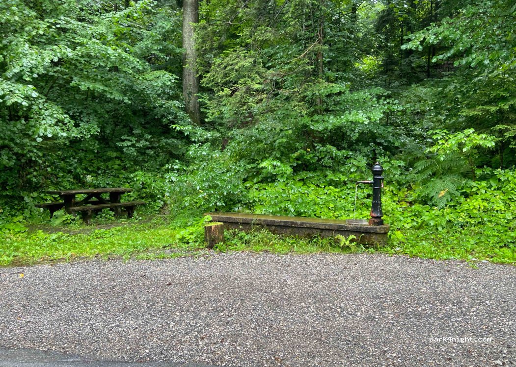Eine schöne Wasserstelle für Trinkwasser mit Picknick Platz an der Straße 406 kurz vor Rovce auf der linken Seite. Haltebuchten auf beiden Straßenseiten auch für Wohnmobile.