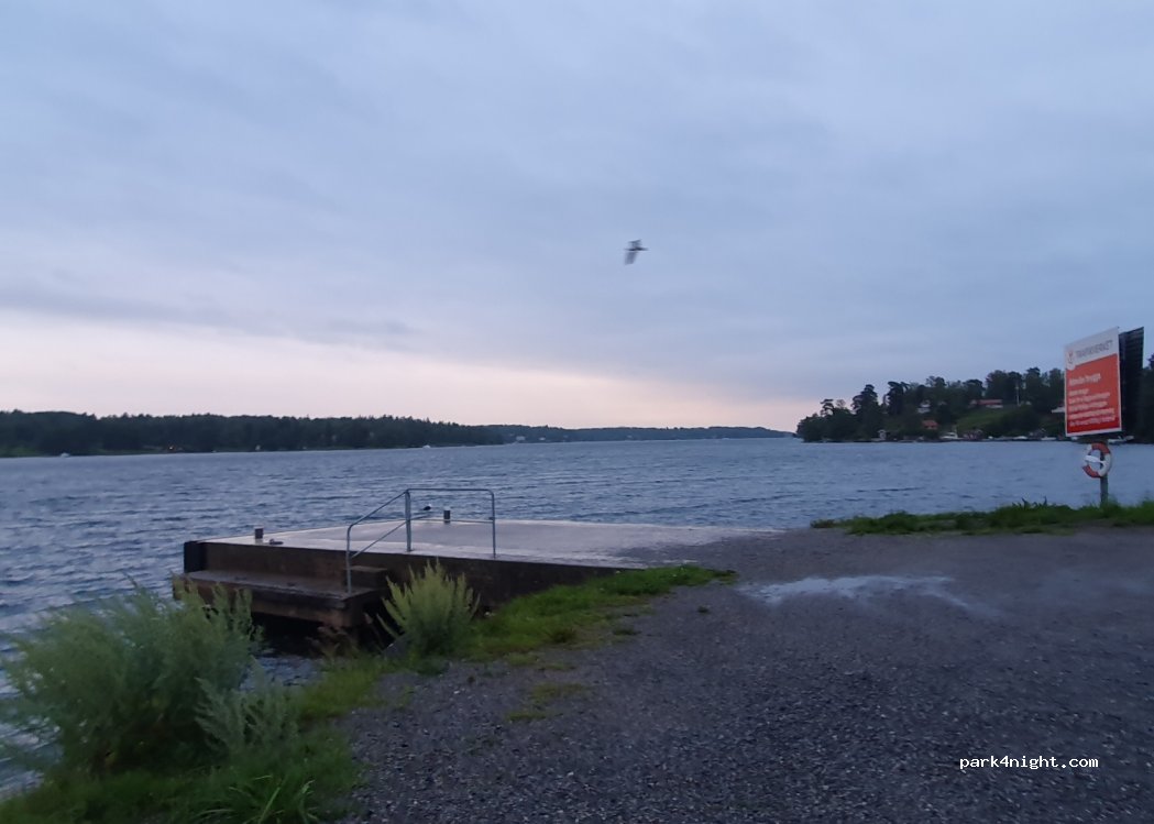 Probably the calmest quietest spot on this island. After-season, on a Thursday night, not a soul here. We stayed overnight in a 7m, absolutely no problem, however you want to stay at the top to the far right in the front, do not drive down the last few meters next to the little hut as it is the pier and is needed for un-/loading small ferries. Tons of mosquitoes, which don’t bite anymore at 7•C.