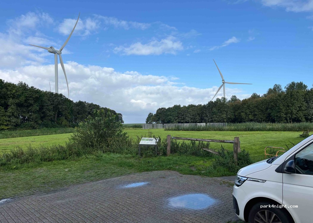 Parking pour un projet d'art paysager appelé "Polderland Garden of Love and Fire". Quelques légers bruits de moulins à vent à proximité.