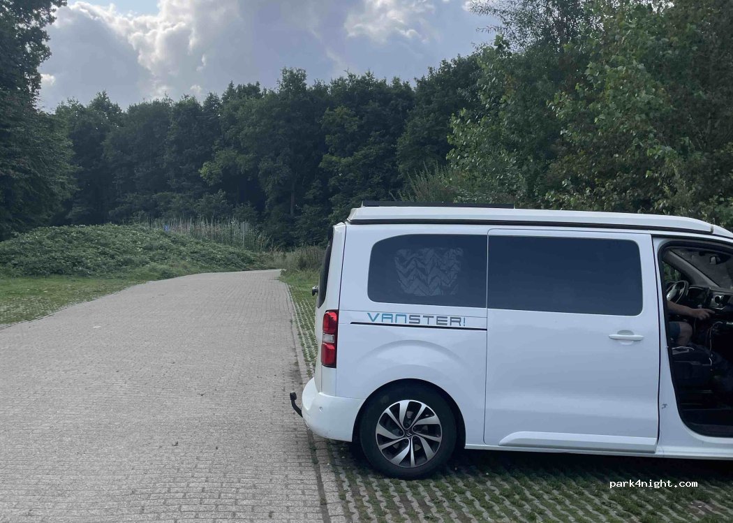 Parking à plat à l’entrée d’une forêt et chemins de randonnée. Pour une dizaine de van. Certainement un lieu d’échange de drogues. Des allers retours de voitures de 18h à 20h. Mais aucun dérangement de leur part. Des bonjours de loin. Chacun faisait sa vie.
