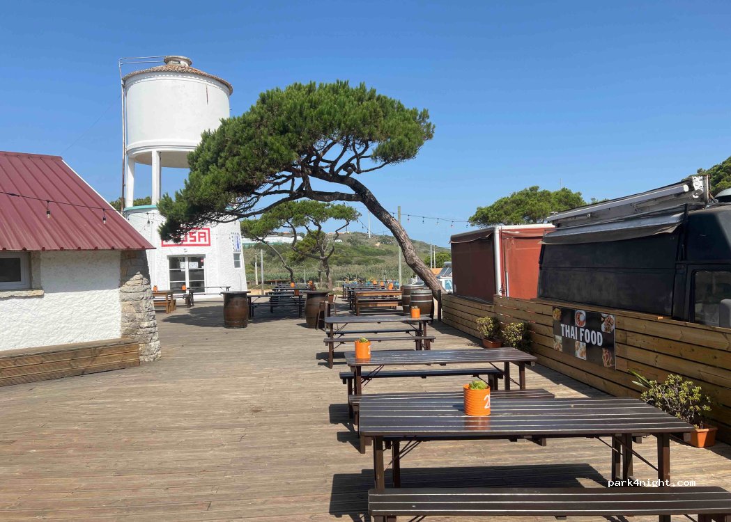 Great spot for drinks and food but only worth €15 if you really need to shower (reception unlocked for us as we were the only camper) delicious food and drinks and great vibe at the weekends. Unusually grumpy staff at several vendors and the reception by Portuguese standards.. still a good time. No services besides toilet/shower