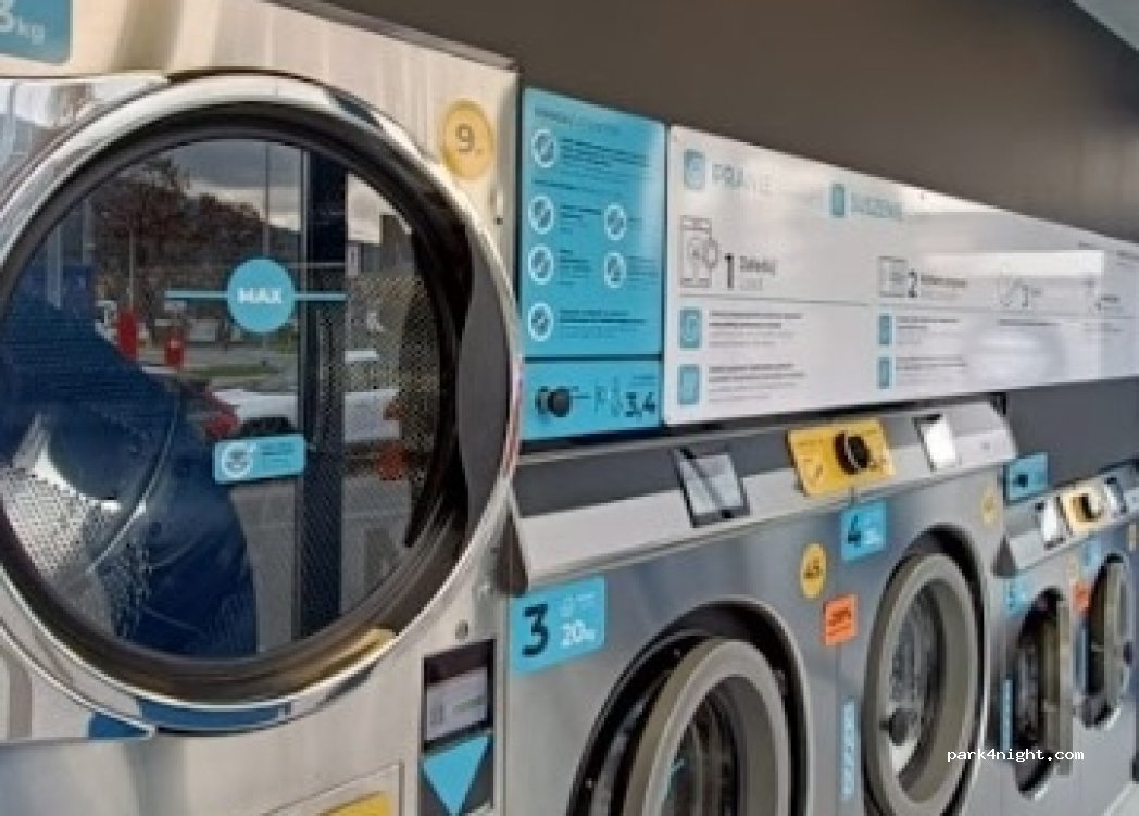 Super laverie très très propre. Lessive inclu. Paiement par carte. Machine traduite en français. Parking d’un super marché donc super. Possibilité de faire ces courses ,le plein de carburant et de laver le camion ! Un vrai gagne temps ! Ouvert tous les jours