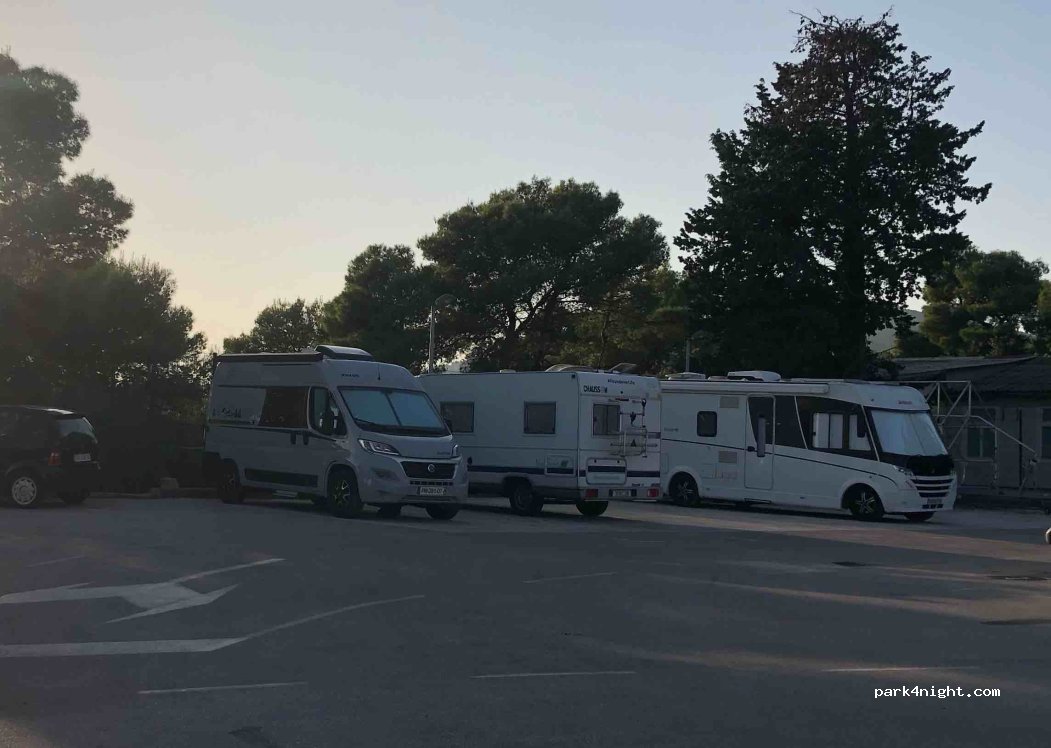 The parking is designed to be paid but the operator booth is closed, the bay is open and the payment machine disconnected. The location is ideal to visit Trogir by walking from here, and after the visit you walk 500m up on the road and you have an idilic spot for swimming in the sea. top!