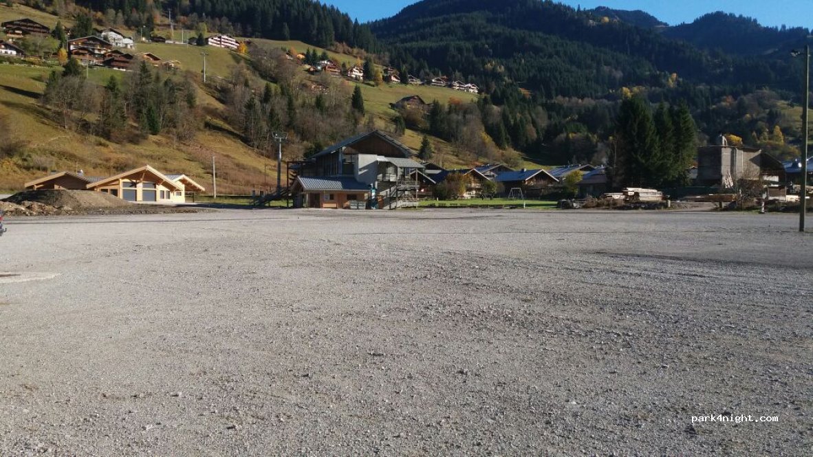Grand parking de la télécabine de la Panthiaz, goudronné, non éclairé et calme. On peut apercevoir des cerfs dans les champs voisins, Boulangerie, tabac et eau potable, à 5 minutes à pied. Point de départ de randonnées et la Drance à 5 minutes pour la pêche. en période de ski parking ouvert