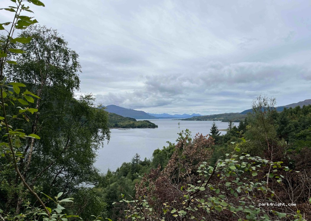 Nous avons passé la nuit ici car il n'y avait plus de place à Dornie à côté, et nous avons passé une très bonne nuit. La vue est très jolie le matin. Attention, il n'y a pas beaucoup de place pour se garer, et la route pour y accéder n'est pas large