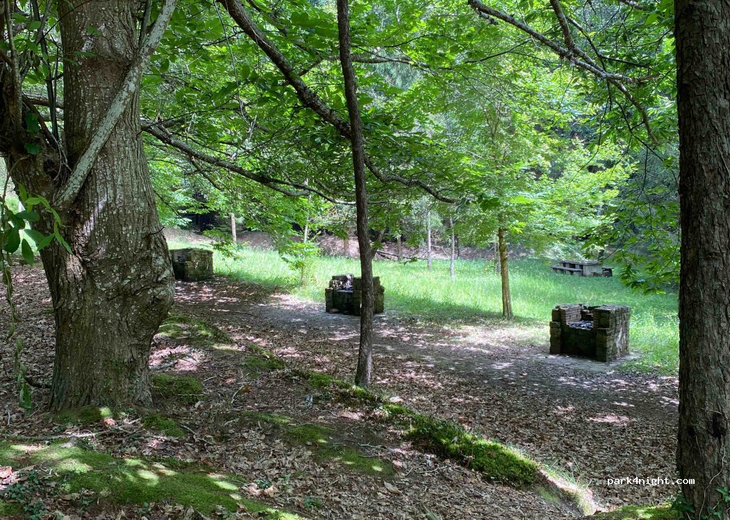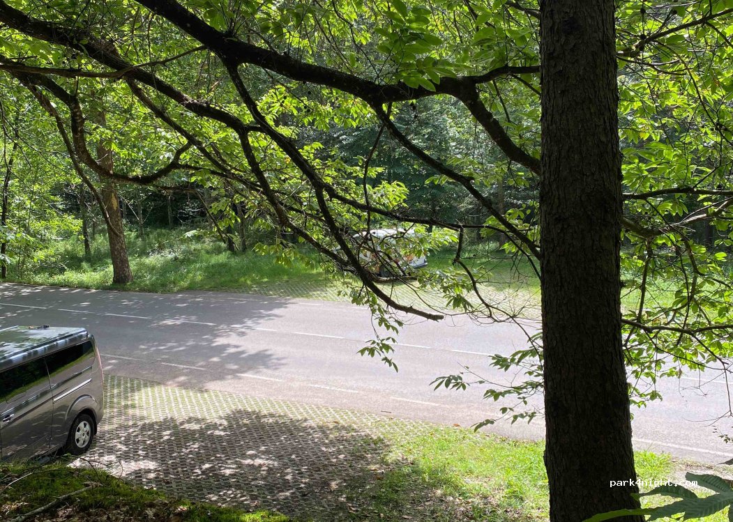 Il y a plusieurs tables de pique-nique avec des grillades. Il y a un parking des deux côtés de la route.